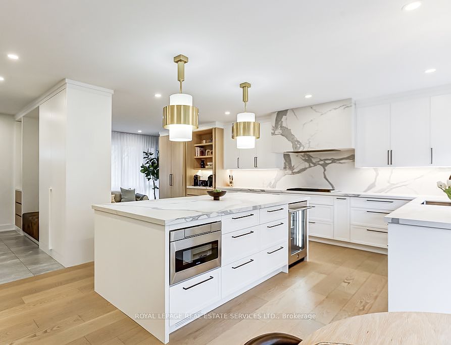 A stunning, thoughtful re-design in the heart of Princess-Rosethorn. Taken down to the studs, this extensive renovation and reconfiguration has transformed the home into a custom-built showcase of modern elegance.The expansive chef's kitchen is the heart of the home, featuring a large centre island with beverage fridge, generous seating, and high-end finishes throughout. A versatile eat-in dining area overlooks the private backyard and pool, creating the perfect setting for everyday living and entertaining. Exceptional storage solutions cater to the most discerning cook, with thoughtfully integrated built-ins and a spacious walk-in pantry. Adjacent family room features custom millwork with built-in appliance garage, coffee bar with sliding doors, built-in bar area and endless storage. The cozy main-floor formal living with wood burning fireplace and carrara marble surround also features a built-in office area and a versatile fourth bedroom perfect for a main floor office, dining room or playroom.Other upgraded features include; stone bench, rain shower and heated floors in primary ensuite, basement gym, salt water pool, generator, security film on main floor and basement windows, Nest doorbell and thermostat. Just a short walk to the shops at Thorncrest Plaza, Rosethorn Junior School and Rosethorn Tennis Club. This family friendly neighbourhood also provides easy access to all major highways and transit.