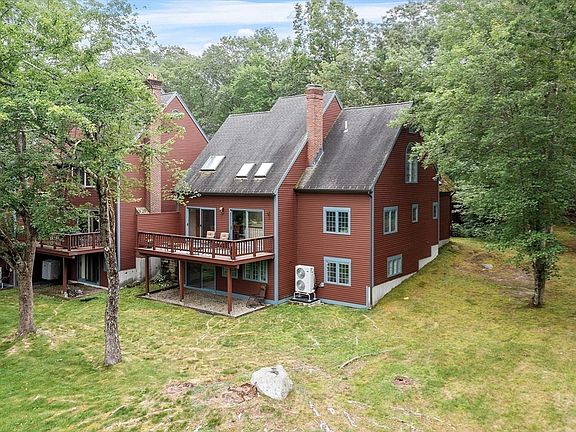 Rare opportunity to own a DETACHED, WATERFRONT townhome in Westford’s desirable Blanchard Farms! Tucked at the end of a quiet dead-end street, this sun-drenched home offers unmatched PRIVACY, VIEWS, & SPACE. Living room w/ Andersen sliders, skylights, wood-burning fireplace, & custom built-ins. RENOVATED kitchen with GRANITE, STAINLESS appliances, white cabinets, & hardwood opens to elegant dining room w/ crown molding. Step onto the oversized DECK and enjoy breathtaking pond views. Upstairs features a vaulted PRIMARY SUITE w/ WIC, en suite bath, & LOFT perfect for office or lounge. 1st floor offers optional MAIN LEVEL PRIMARY with full bath & laundry nearby + a 3rd bedroom & half bath. Walk-out LOWER LEVEL is a showstopper w/ bar, stove, natural light, guest room, XL CEDAR CLOSET & storage. Recent updates incl. 2025 HEAT PUMP, WATER HEATER, garage door, interior paint. Enjoy POOL, TENNIS, PICKLEBALL, trails, clubhouse. Top SCHOOLS, shops, & more nearby! Offers due Monday 7/21 @ 3PM