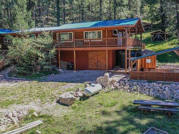 Escape to a serene mountain retreat tucked among the tall pines and aspens in the Sacramento Mountains. This secluded yet accessible home blends rustic charm with modern comfort, offering generous living spaces, thoughtful details, and outdoor living at its finest with breathtaking views, privacy, and easy access to hiking, outdoor recreation - The Lincoln National Forest Access is just a short distance away- and local amenities. This comfortable 3-bedroom, 2-bathroom residence features a large primary suite with walk-in closet and an en-suite bath. Two additional bedrooms share a full, well-appointed bath. An expansive living room centered around a pellet stove, for the cool fall and winter evenings, with vaulted ceilings that create an open, airy feel. The large open kitchen is updated with modern appliances, ample counter space, and a seamless flow for entertaining. A substantial wrap-around covered deck extends the living space outdoors, offering peaceful views of pines and aspens, shaded lounging areas, and a perfect spot for morning coffee, sunsets and watching all the wildlife that comes to visit. A highlighted pavilion area with a fireplace provides an ideal setting for family gatherings, cookouts, and gaming or social evenings. Under the house is a large workshop area that accommodates tinkering, woodworking, or hobbies, with plentiful storage for tools, seasonal gear, and equipment. The under house space could additionally be used as a one-car or 2-ATV/UTV garage. This home is perfect for families, entertainers, hobbyists, and anyone seeking a tranquil mountain escape with quick access to nature, outdoor recreation, and all-season comfort. This property offers a peaceful retreat without sacrificing modern convenience, all set in the beauty of the Sacramento Mountains! Don’t forget to check out the 3D Virtual Tour and schedule your showing today!