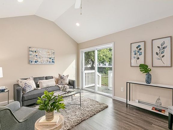 One level living at its best! This adorable ranch features a beautiful family room addition w/vaulted ceilings, living room w/bay window and hardwood floors, remodeled kitchen w/wainscoting, gas cooking, granite counters, ss appliances, and pantry, remodeled full bathroom w/tiled shower/tub, 3 bedrooms (all hardwood), and a finished lower level playroom. All rooms have been freshly painted (BM Edgecomb Gray). All hardwood has been newly refinished. Newer roof (7 years). Brand new heating system (Navien tankless hwh/boiler installed 2025). Irrigation system (front and back). Public water/sewer. All of this in nice neighborhood in a great location close to the town center with easy access to Route 93 or 495! You won't find anything better at this price point!