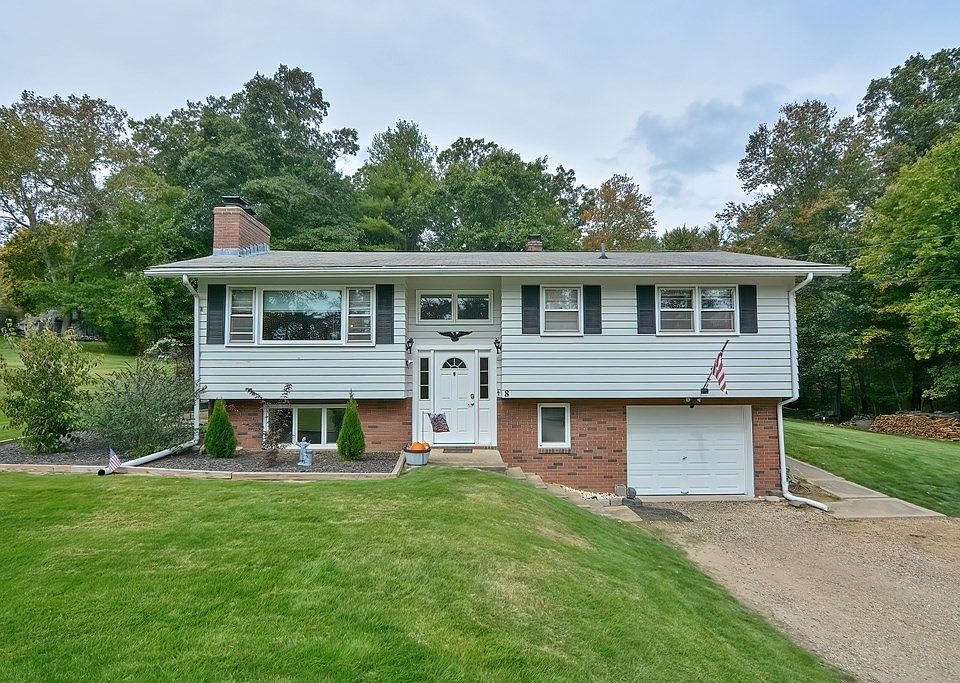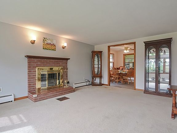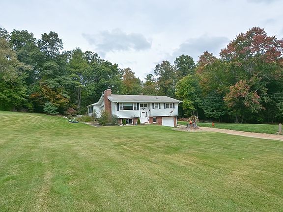 Beautiful and private location with acreage! This split level ranch has everything you could wish for as well as plenty of opportunity for expansion. The gorgeous sunroom offers the perfect place to enjoy the beauty of the fall and winter months in your own oasis. Tons of cabinet space in the kitchen as well as brand new flooring in both the dining room and kitchen. Large living room with tons of natural light and a fireplace. Hardwoods throughout the hall and 3 bedrooms. On the first level, there is a large finished room with a fireplace, bathroom, and laundry room. Plenty of space in the garage for parking and storage. Come see us at our open house on Saturday from 11-1!
