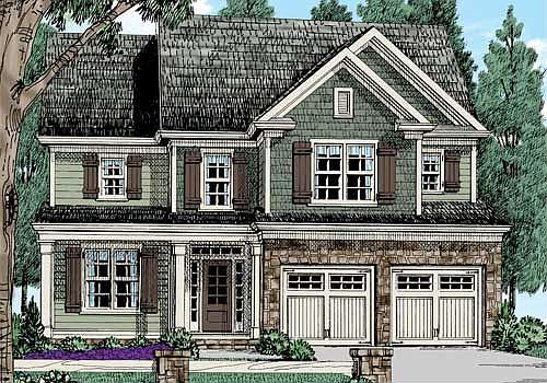 The Belmar is a Colonial style home located in the Brook Hill subdivision. It features a master suite with double walk-in closets and a very large eat-in kitchen. See assoc docs for standard features. Model at 81 North Langmore.