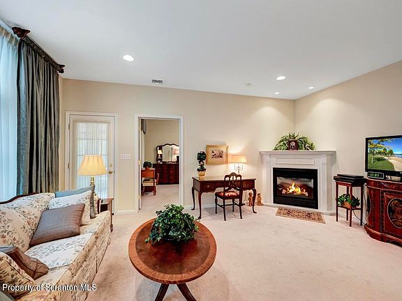 Move in condition townhome nestled in the sought after South Abington Woods community in Abington Height School District. End unit open concept floor plan is perfect for entertaining. Enter your home into the bright welcoming foyer. Dining room and living room separated by columns. Enjoy cozy evenings with your gas fireplace. Kitchen has plenty of cabinets and counter space. When its time to relax the 3-season sun porch is perfect for enjoying your morning coffee. the first-floor primary suite boasts a walk-in closet, laundry area, en-suite bath with stand up shower and a separate soaking tub. Upstairs 2 additional bedrooms with ample closet space and a shared full bath with a tub/shower combo complete the upper level. Enjoy turn key living, all lawn, landscaping, and snow removal is completed by the HOA.