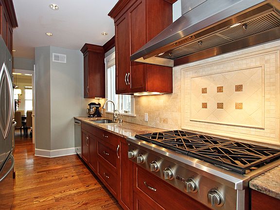 Updated to perfection, this 1925 Colonial enjoys a prime spot in one of Maplewood's charming neighborhoods. Walk to town & train in just minutes thru a serene wooded path. *Zen Garden in Backyard* All systems have been updated including 2 zone AC, whole house generator. The fully remodeled gourmet kitchen features top of the line appliances, and Cherry wood cabinets topped with granite countertops. Built in seating lines the breakfast room and a doorway leads to the deck with stairs to the bluestone patio and backyard beyond. Positioned on the 2nd & 3rd floors are 4 bedrooms and 2 full baths. Finished lower level has a large rec room, laundry area, utilities and storage. Possible master suite on 3rd floor with full bath and great sized closet.