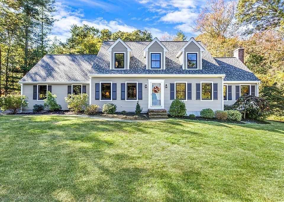 Welcome to a truly impressive Cape-style home offering over 3,000 sq. ft. of finished space, multiple upgrades & it's set on a serene 2.76-acre private lot w/ easy access to the Rail Trail. The heart of the home is the lrg, well-appointed eat-in kitchen, featuring rich cherry flooring, a central island, & elegant leathered granite counters. Entertaining is effortless w/ a front-to-back FR that includes a wood-burning FP & beamed ceiling, a huge formal DR, & an additional cozy LR. Laundry room & half bath complete the 1st flr. The 2nd flr hosts 4 spacious bdrms including the primary ste w/ walk-in closet & private bath. Finished LL recently updated w/ new carpet and fresh paint offering endless possibilities. Outside, a large composite deck provides the perfect spot to enjoy the private, wooded surroundings. Major updates: Furnace, A/C & mini split (25), Windows (21-22), Roof (20), Deck (14), Driveway (15), garage doors (18) and enjoy the convenience of natural gas & town water. Wow!