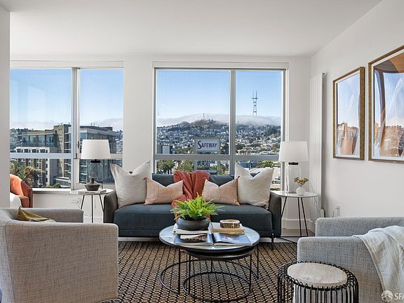 Experience modern elegance at 8 Buchanan Street, Unit 705, a stunning 2-bedroom, 2-bathroom penthouse residence designed by the renowned architect Bernardo Fort-Brescia. Built in 2014, this 1,152 sqft Condo boasts abundant natural light and breathtaking views from every room. The modern European and Italian cabinetry, polished quartz countertops, stone backsplashes, and gas appliances elevate the kitchen to a culinary haven. Gorgeous wood flooring complements the spacious living/dining room & bedrooms, while the in-unit laundry and walk-in closet add convenience and luxury. Enjoy the convenience of a designated parking space and the luxury of a lobby attendant, bike storage, doorman, elevator, and intercom. Step outside to discover a common rooftop with panoramic views and an interior courtyard, perfect for relaxation and entertaining. Located at the intersection of Hayes Valley, Duboce Triangle, the Castro and Mission Dolores. this home offers easy access to MUNI across the street and is walking distance to Whole Foods, Safeway, Starbucks, and Pet Food Express. With a 99 WalkScore, live in luxury and style at this modern oasis in the heart of San Francisco.