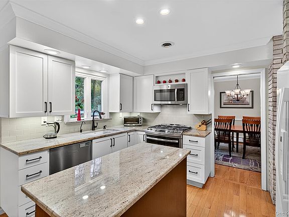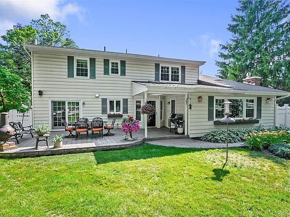 Home sweet home! Welcome to this meticulously maintained and thoughtfully renovated 4 bedroom, 2.5 bathroom colonial located on a nice, quiet street in the Village of Goshen. For sale for the first time in over 30 years, this is a wonderful place to call home. Well cared for, renovated, and updated throughout the years, this residence is move-in ready with a newly renovated kitchen, recently renovated bathrooms, and freshly repainted. The owned Solar Panels on the roof produce the current owners complete electrical needs including the whole-house central air conditioning. The owners currently pay about $20/month connection fee to Orange and Rockland. A natural gas-powered Generac generator is rarely needed but gives peace of mind to never be without electricity. Gleaming hardwood floors are found throughout the main floor. New windows are throughout the home and basement. New six-panel doors throughout the house. The newly renovated kitchen features granite countertops, Blanco granite sink, shaker cabinets, a movable kitchen island with cabinets and drawers, recessed lighting, a natural gas stove/oven, and a kitchen desk area. Reverse osmosis water faucet at kitchen sink. The formal dining room features hardwood floors, crown molding, French doors to living room, pocket door to kitchen, an Andersen sliding door exit to the patio and back yard. The spacious living room is great for hosting guests - featuring a front picture window, hardwood floors, crown molding, and a large coat closet. The family room features a large picture window to the back yard, a Mendota gas fireplace, and an exit to the rear patio. Have a drink from the bar room located off the family room. Laundry area with well-organized shelving. A recently renovated half bathroom is conveniently located on the main floor. On to the second floor - the large primary bedroom features two spacious walk-in closets, an en-suite bathroom, hardwood floors and crown molding. The primary en-suite bathroom has a dual vanity sink with granite countertops, crown molding, marble-like porcelain tile flooring, and a multi-jet Jacuzzi and shower. Bedroom 2 with hardwood flooring is currently used as an office with two nice sized closets. Bedrooms 3 and 4 are nice sized bedrooms with windows to the backyard, large closets, and carpeting. The full second floor hallway bathroom features Marble-like porcelain tile flooring, dual sinks and crown moldings. The full, unfinished basement provides for plenty of storage with tall ceilings and contains the main utilities including the Natural gas fired furnace with hot water tank and the water softening system. The storage area below the family room provides for more additional storage.