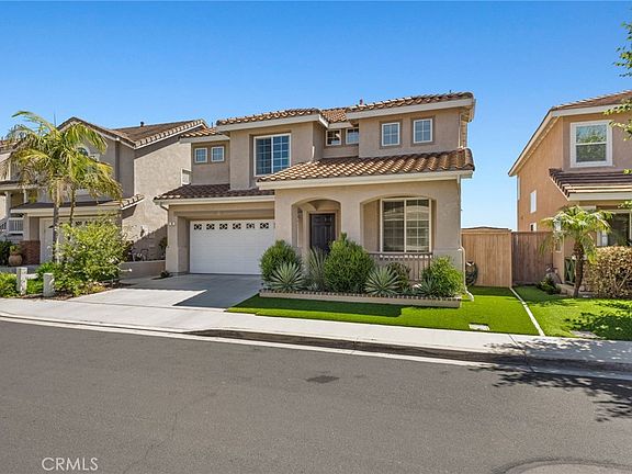 Stunning, unobstructed panoramic city and Saddleback mountain views are afforded from this comfortable, warm and inviting home located in the California Summit community. Boasting a generous floor plan and ample room sizes, this remarkable home is truly special. Featuring over 2,100 square feet of living space, including four large bedrooms, and an oversized family room that was previously the site of the 5th, downstairs bedroom - easy to convert back to a 5 bedroom home! Open gourmet kitchen with ample storage, breakfast nook and a large center island all of which opens up to the large family room, ideal for gathering with loved ones. Upstairs, the oversized primary suite boasts a balcony from which to enjoy the breathtaking views, as well as a fabulous bathroom with spa tub and walk-in shower, and two closets. Completing the upstairs level are three bedrooms, laundry room, a secondary bath and a computer/homework niche. Additional functional features include a whole-house repipe with PEX done in 2018, and a tankless water heater. Beautifully designed backyard boasts artificial grass for a perfect lawn year-round, as well as covered patio space ideal for al fresco dining while taking in those gorgeous forever views. Aliso Viejo is an idyllic community boasting community parks and events, hiking trails, shopping, entertainment and excellent schools. Incredibly low HOA and no Mello Roos tax! This home is ready for your lasting family memories to be made - welcome home!