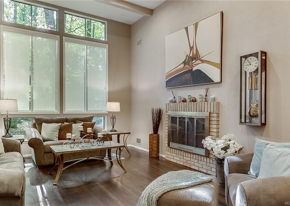 A BEAUTY of a HOME in a very desirable location!! AWARD WINNING DESIGN! This home is beautifully updated! Impressive 2 story Living Room and cathedral ceiling in the Dining Room.Brand NEW KITCHEN with granite counters, stainless steal appliances, double sink. All bathrooms recently redone! Recessed lighting thruout the home. Over-sized large windows bring in a lot of light. 2 fireplaces, hardwood floors and more. Spacious laundry room on level of the 4 bedrooms. Sliders off dinette area to two tier deck. Large ATTIC that has potential for extra living space! Finished (bsmt) lower level. Sq Footage includes lower level - which has large windows and is only 6 steps down.