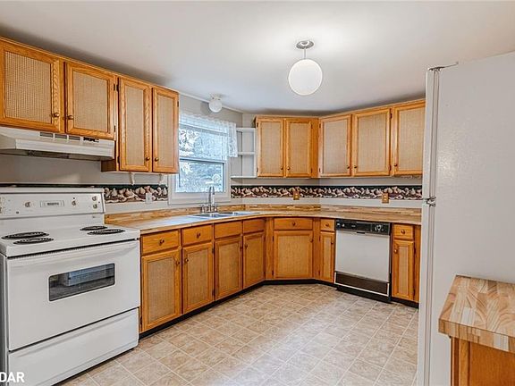 WELL-KEPT 2-BEDROOM HOME IN AN AMENITY-RICH ADULT LIFESTYLE COMMUNITY! Enjoy relaxed living in this charming Monaco II model bungalow nestled on a quiet cul-de-sac in Sandycove Acres, Innisfil’s premier adult lifestyle community. Built on-site with drywall construction and offering over 1,350 square feet of well-designed living space, this bright and inviting home is ideal for those seeking comfort, community, and ease of lifestyle. The well-equipped kitchen features warm wood cabinetry with woven rattan-style inserts, ample counter space, and a double sink, opening to a spacious living and dining area highlighted by a bay window and cozy fireplace. A four-season sunroom extends the living space with natural light and a walkout to a lovely back deck and garden shed, perfect for enjoying peaceful afternoons. The primary bedroom includes a walk-in closet and a 3-piece ensuite with in-home laundry, while the second bedroom and 4-piece main bath provide convenience for visiting family or friends. Very well-maintained and solidly constructed, this home offers tremendous potential to refresh and make it your own. Experience the easygoing lifestyle this vibrant 55+ community is known for, complete with three clubhouses, two heated outdoor pools, fitness and games rooms, woodworking and hobby spaces, shuffleboard and pickleball courts, walking trails, and social events that bring neighbours together. Located just minutes from Lake Simcoe, Innisfil Beach Park, and South Barrie’s shopping and GO Station, this is retirement living at its best!