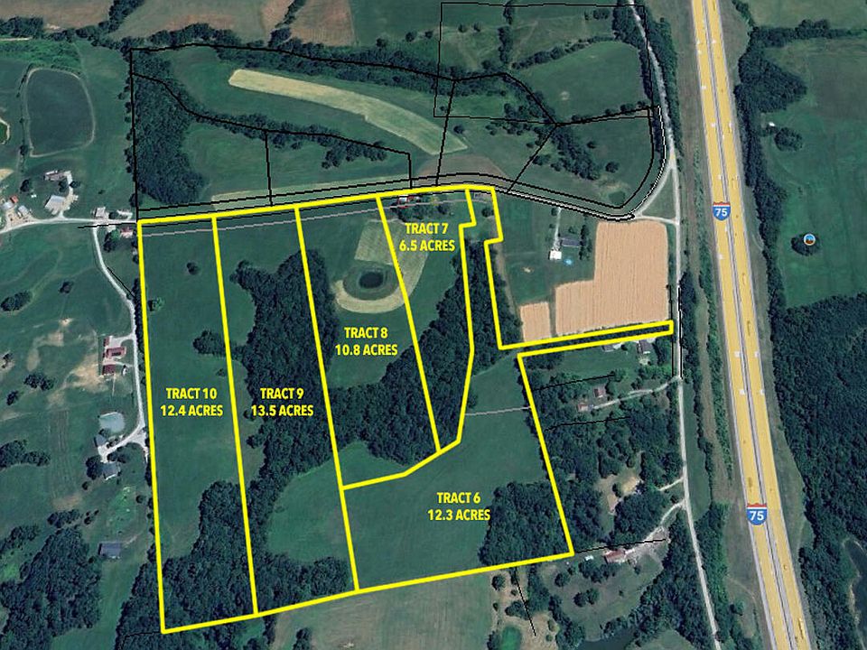 Tract 8 offers 10.844 acres with 329.5 feet of road frontage and a private pond perfect for fishing, giving it a unique recreational advantage while still providing excellent building sites. An amazing opportunity to own a slice of Kentucky's natural beauty! All tracts are subdivided from 3855 Dixie Highway, Dry Ridge, KY and offer breathtaking views, a mix of rolling hills & flat, buildable areas, and a blend of cleared & wooded land—perfect for those seeking space, privacy, & freedom. Zoned agricultural, this land is ideal for embracing the country lifestyle with room for chickens, gardening, quads, shooting, and more. Pole barns & pole barn homes are allowed, and you can bring your own builder or let us help connect you with one. City water & electric are available at the street; septic system will be required. While single-wide trailers are not permitted, this land offers the flexibility to create your dream rural retreat.