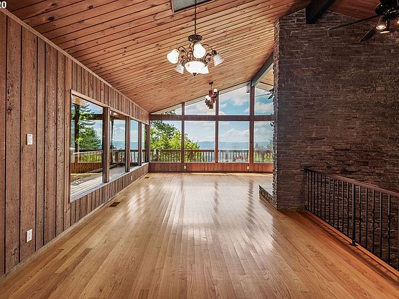 Diamond in the rough, on 1 acre w/ a spectacular view from the fantastic floor to vaulted ceiling windows. Enjoy that view while sitting next to a warm fire at the grand fireplace. 4300 sq ft, with 3 bdrms, 1 finished bath 1 plumbed bath on the main. Kitchen has tons of storage. Downstairs there are 2 more rooms with extra storage/shop, a full bathroom and a huge bonus/rec area as well as another fireplace, New deck in 2016, new roof in 2010. 3 car gar and outbuilding.