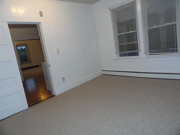 This c. 1900 home in the heart of "the Village" in Willington, CT used to be housing for families employed at the mill just down the road. 8 Center Street is a large three-family dwelling on the corner of Center St and Village St., one block off of Rt 32. VERY large bedrooms, each with a huge walk-in closet and beautiful hardwood floors. The living room has a private balcony/porch. Each bedroom is separated from the other two to provide ample privacy. Washer and dryer hookups are conveniently located in the back hall. There is plenty of off-street parking for three cars. Water, sewer and garbage pickup is included in the monthly rent. All other utilities are the responsibility of the tenant. Tenant responsible for electricity and heat Owner pays for trash, sewer and water.
