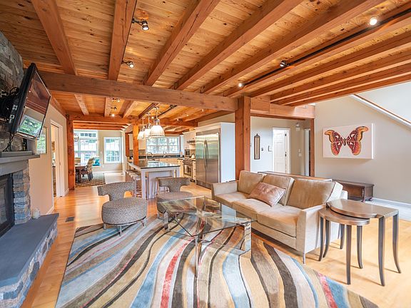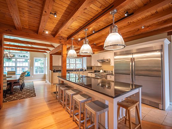 Beautiful completely remodeled and expanded country home less than 3 miles to Mount Snow. This property is a true treat for someone looking to enjoy all four seasons, as there is snowmobile trail access from your private lot, easy access to skiing and lakes, a garage for toys, outdoor hot tub on the entertaining covered porch with stone fireplace, garden shed ideal for a fun bunk house, and stone patio with built in grill. Featuring gorgeous upscale living spaces with post and beam exposed woodwork, a gorgeous chefs kitchen with large island, stainless appliances, double fridge, gas stove, walk in pantry and bar area with second dishwasher, beautiful bright dining room with window seat, cozy living room with gas fireplace and stacked stone hearth, main level family room with billiard table and movie area with wood burning fireplace, upstairs primary suite with tiled bath and gas fireplace, two additional guest bedrooms with 2 gorgeous tiled baths, finished lower level with bunk room, double laundry, large climate controlled wine cellar, and another family room, and a spacious Vermont mudroom with cubbies and closets for all your gear. Less obvious upgrades include high end vinyl siding for low maintenance, a whole home generator, public sewer so you will never worry about having too many guests, a large paved driveway for ample parking, and more. This could also be an amazing rental property given the layout and space. A truly idyllic spot for downtime, not upkeep.