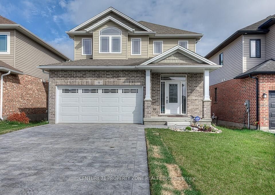 Pristine 2-storey McKenzie-built home featuring 3+1 bedrooms, 4 bathrooms, and a double cargarage in one of Ingersolls most sought-after neighbourhoods! Step inside from the covered porch into a spacious foyer with garage access. The main floor offers an open kitchen and dining area perfect for entertaining, a family room with hardwood floors, and a convenient 2-piece bath. Upstairs, the primary bedroom boasts a 3-piece ensuite with a sleek glass walk-in shower, along with two additional spacious bedrooms and a 4-piece bath.The fully finished lower level, completed by the builder, includes a bright bedroom, a 4-piece bathroom, and a rec room. Upgrades and details shine throughout, including California shutters, an interlock driveway, and professionally landscaped front yard. barely lived in, this homestill feels brand new. Walking distance to the park and quick access to Highway 401. Lot premium with no side walk This stunning property truly has it allmove in and make it yours today!
