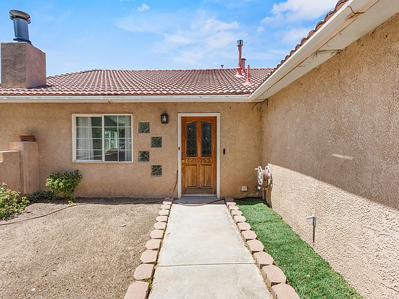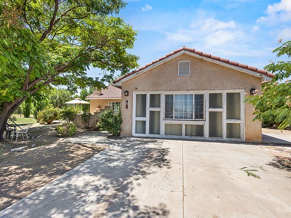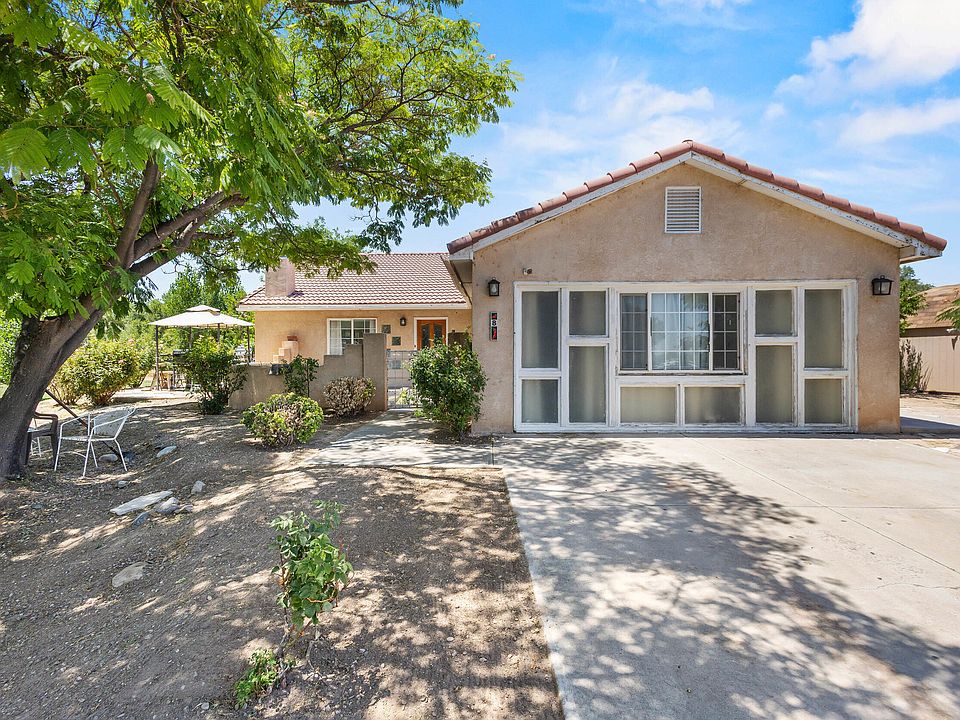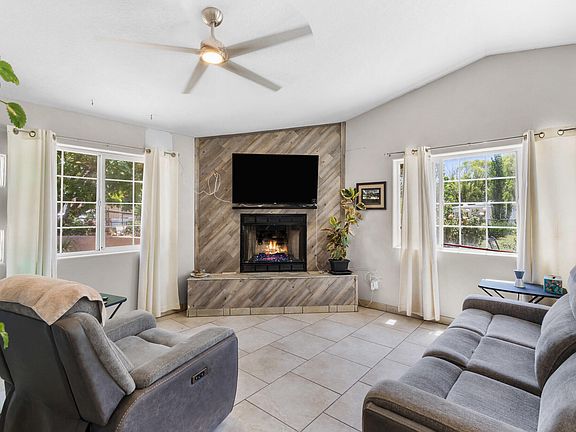 This fantastic 2,155 square foot home offers 3 bedrooms and 2 full baths, situated on 1.43 acres with ditch irrigation access. The garage has been thoughtfully converted into a large bedroom and is included in the square footage, creating a great floor plan with plenty of living space. The inviting living room features a cozy gas log fireplace, while the spacious kitchen boasts a breakfast bar and dining area perfect for gatherings. The primary onsuite includes a separate shower, relaxing garden tub, double sinks, and a generous walk-in closet. Outdoors, enjoy a front courtyard, an patio, completely fenced with a storage shed and plenty of room for animals and recreational vehicles, making this property a wonderful blend of comfort and functionality.