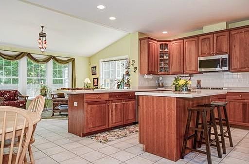 Step in to this sun filled kitchen and Florida room for an expansive view of the outdoors! This bright,spacious floor plan includes a gourmet kitchen with tons of counter space, double ovens, maple cabinets and center island. The kitchen flows to a beautiful tiled sunroom with picture windows and an adjoining deck to the wooded back yard. Just off the kitchen is a large family room with gas fireplace and huge windows. These three rooms are the heart of the meticulously maintained home! The formal dining room has crown molding, pillars, wainscoting. It flows to the open formal living room with bay window. There is also a first floor office with french doors. The second floor master includes a tray ceiling bedroom with sitting area and large walk in closet. The master bath has double vanity sinks,soaking tub and separate shower. There are three more bedrooms, each with a large closet, and second floor laundry room. Finished lower level is great flex space! Wonderful neighborhood!