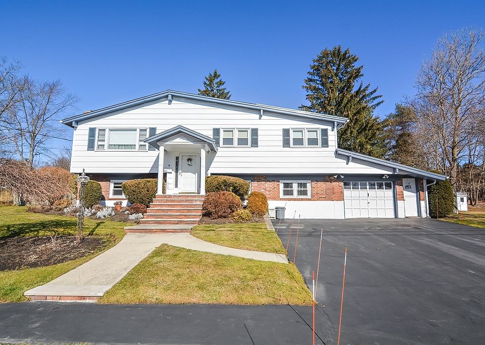 In the heart of West Peabody in Presidential Hill location! Cathedral ceilings spread through the LR (with fireplace), DR & kitchen giving this 3-bedroom, 44' split entry a contemporary feel. EIK boasts granite countertops, SS appliances, & trash compactor. Kitchen back door leads to desirable, 13x11 screened in porch with vaulted ceiling & ceiling fan. The sought after large, level fenced backyard has an IG, heated gunite pool with side hot tub and plenty of add'l yard to play in and enjoy. Hardwood floors under w/w carpet on main level. Cozy ground level family room has brick wall with wood stove. Sizable game room with 11x6 wet bar area will host all your company. Added 1 C garage has direct access to the house. Various amenities include: fully applianced, replacement windows, sprinkler system, central air, ceiling fans in kitchen & all bedrooms, convenient laundry sink, much wanted 4x6 cedar closet, warming heat lamps in full bath, backyard cabana with electricity, 2 water meters.