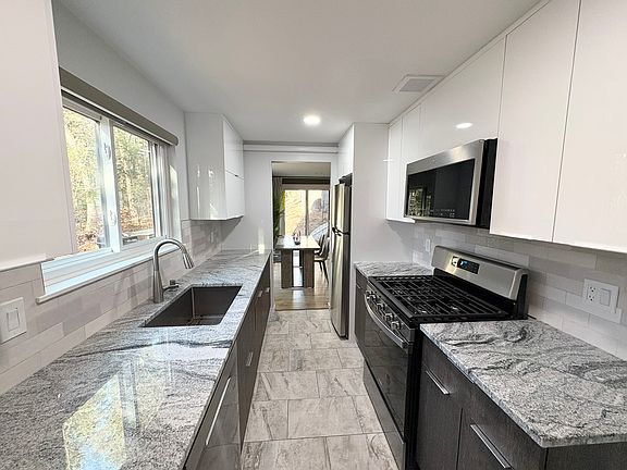 Welcome to this beautifully renovated home in highly sought-after community of Pond Place in Avon. This home offers warmth and tranquility in every corner. The open concept layout creates a seamless flow between living, dining and kitchen areas leading through the sliding doors to the private patio with multi-level sectional deck perfect for entertaining and relaxation. Big Y Supermarket and Walmart are walkable distance, still not in close proximity, and the house is perfectly nested in a quiet cul-de-sac offering a chalet style living surrounded by woods while being close to everything - Whole Foods, restaurants, banks, health clubs. Hardwood flooring throughout, recessed lighting and brand new light windows add up to the brightness of southern exposure. Custom modern kitchen with high gloss light cabinets and natural granite countertops elevate the home's close-to-nature style and functionality. Enjoy the cozy evening by the fireplace and bright airy views of the forest during the day. Two spacious bedrooms are located on the second level and have beautiful views. There is plenty of additional storage in the attached shed and spacious garage. The tenant will enjoy the community pond with picturesque views, trails and pickle ball & tennis court.