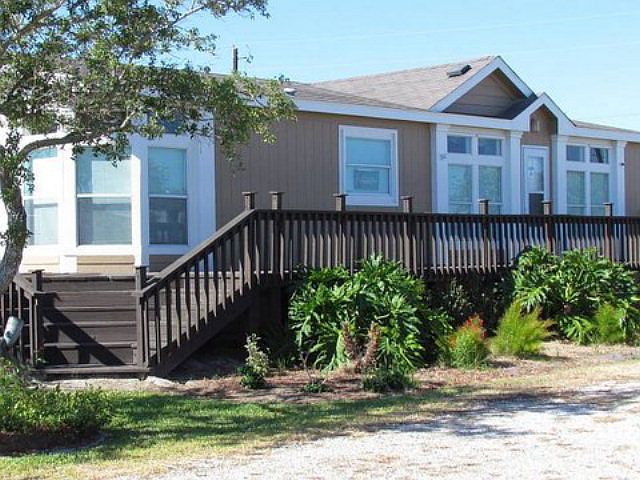WOW! GET INTO COASTAL OAKS AT A REASONABLE PRICE....Super clean windstorm rated double wide w/fireplace on large corner lot, 3 blocks to Froggie! Room for boat barn or additiona barnominium! 2 dining areas; breakfast nook and dining area adjoining living area. Tile accents in kitchen! Dishwasher, large porch on front runs length of residence. Circle drive lets out onto Monroe and Coastal Oaks Loop; rock driveway. Going Furnished! 3 bedroom, 2 bath, master and bath on one side, 2 bed, 1 bath set up on other side. Utility room has room for freezer, washer/dryer and assorted storage bins. Make this one a first stop on your tour of POC! All you need in POC! (If you don't want to build a barn, Lone Star Boat Storage is across St., owner used that location for boat storage.)