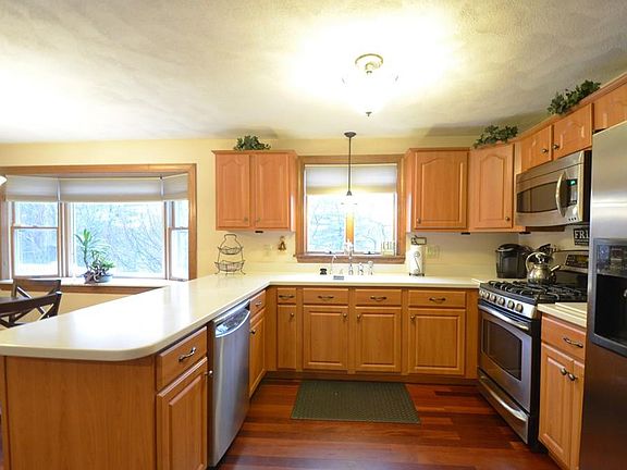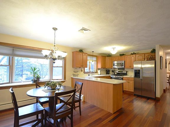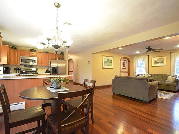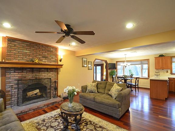 Step in and admire the craftsmanship! Beautiful Brazilian Hardwood Floors throughout the first floor set the tone! The Living Room w/Beautiful fireplace pours into the Eat-In Kitchen featuring Bay Window & Stainless Steel Appliances! Next Step into the Family Room w/Tons of Natural Light, Sky Lights, Recessed Lighting, & Access to the 2 Level Deck! Master Bedroom Suite features Walk-In Closet & Master Bathroom w/Built in Bench & Shower features steam & jets! Guest Bathroom features large linen closet & Oversized Jacuzzi Tub w/seamless glass doors & ceramic tile. 3 additional bedrooms w/wall to wall carpet & ample closet space complete level 2! Still need some more space? This home has it w/Bonus room in the basement & expansive storage space! It does not stop there step outside & admire the Man made Pond w/Waterfall, Stone Patio, Oversized 2 Car Garage, Plenty of Parking, Large Storage Shed, & Sprinkler System! Close to Route 3, 495 &128!! Make Your Appointment Today