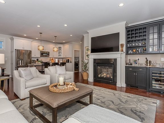 Stunning Single Family Detached Condo at the highly sought-after Village at Cooks Farm! Desirable location adjacent to the Franklin Country Club in a prime location overlooking conservation. Open floorplan is perfect for entertaining with the Chef's kitchen featuring Custom White Shaker Cabinetry, Center Island with pendant lighting, recessed lighting, tile backsplash, Granite counters and stainless appliances. Fireplaced Family room leads to double slider providing natural light and opening to the private deck, built in hot tub and sitting area. First floor primary suite with luxurious en suite, custom vanity & built ins and tiled shower with seamless glass enclosure. Upstairs, lofted sitting area and 2 ample bedrooms with loads of closet space and hardwood floors. Impressive 90K basement with family room, full bath and another bedroom gives ultimate floorplan flexibility. First floor laundry and 2 car garage with epoxy floors. Simply too much to list, Must see to believe!
