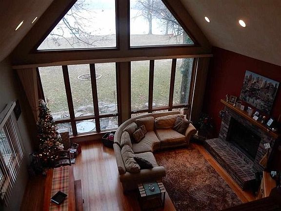 Beautiful 3 bedroom, 2 full bath expanded aframe home overlooking Lincoln Lakes -- enjoy life with family and friends on the water -- quite the view -- WOW! Inside, you will find a wonderfully large living room complete with an entire wall of windows overlooking the water, great floor space, newer bamboo flooring, dramatic open staircase with second story landing/balcony area, fantastic woodburning fireplace complete with a gas starter, soaring cathedral ceilings, built-in bookshelves, appealing skylight, and a French door access point that leads to a wonderful side deck with great overhead shade, formal dining room with plenty of room for a large table and chairs in addition to tile flooring, beautiful newer efficient custom kitchen with hickory cabinetry, tile flooring, all appliances to remain (dishwasher, microwave, range/oven, and refrigerator), and ultra neat silestone countertops, sunken family room addition with wood beamed cathedral ceilings and newer corner woodburner (negotiable), three bedrooms -- master suite is found on the upper level and features two closets (one walk-in) and a desk area in addition to an adjacent full bath -- other two bedrooms can be found on the main floor, a full recently remodeled main floor bath, and main floor hall laundry facilities (washer and dryer also to remain upon settlement). Property also features a welcoming foyer/mudroom, attached storage shed, great front deck with built-in benches, fabulous shade, and a great view of the water, recently added front patio, several newer vinyl windows, two docks (one at front of property -- other to rear), newer 24X24 two car detached heated garage constructed in 2005 with a wonderful adjacent firepit/outdoor entertaining area (additional firepit can be found at front of property also) and swingset (to remain with property), great off-street concrete parking -- all situated on an expansive .31 acre lot -- the list goes on! City water/private septic system. West Lincoln-Broadwell school district. Property also features its own beach area -- so much summer fun has been had here by current owners -- imagine the fun you and yours could have here in years to come! $400.00 annual association dues. Redbook rules and regulations for members available upon request at office -- membership has meetings two times per year. Dream of living on the water? Make your next move your last with this hard to find showstopping Lincoln, Illinois property -- #8 Cottonwood Lane -- A MUST TO VIEW! Note: Prequalified serious buyers only, please.