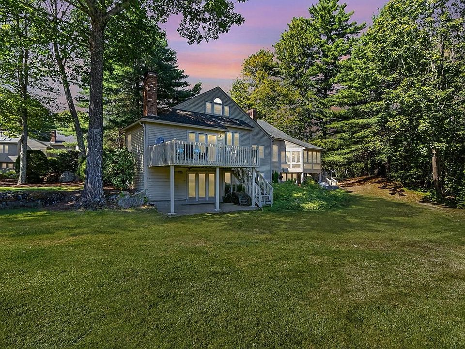 Located along the pristine shores of Paugus Bay on Lake Winnipesaukee in the exclusive gated community of South Down Shores, The Beach Club Village offers a rare opportunity to enjoy private beachfront living at its finest. As the only village in South Down Shores with its own private beach, The Beach Club provides residents with all that Lake Winnipesaukee has to offer and a host of premium amenities. This intimate community consists of just 19 residences, including 7 single-family detached homes and 6 duplex homes, all designed for comfort, privacy, and easy access to the lake. The private beach area is exclusive for Beach Club residents and features a charming beach house with a large waterfront deck, indoor sitting area, storage lockers, restrooms, and a picnic area ideal for lakeside gatherings and summer relaxation. This beautifully maintained home offers a spacious open-concept kitchen, dining, and living area with vaulted ceilings, skylights, and a cozy fireplace, creating a bright and inviting atmosphere. The main level features a primary suite with a full bath with a second bedroom suite with full bath located on the upper level. The lower level features two additional bedrooms, a full bath, and family room complete w/ a cozy wood stove, making it ideal for family and guests. Step out onto the deck and enjoy stunning views of Lake Winnipesaukee. Move right in, start enjoying the lake lifestyle whether you're looking for a year-round residence or a seasonal getaway!