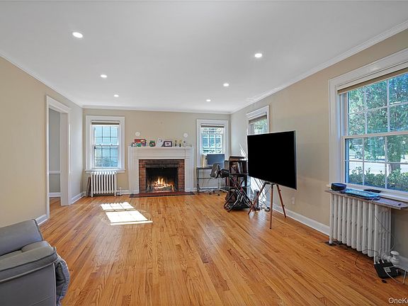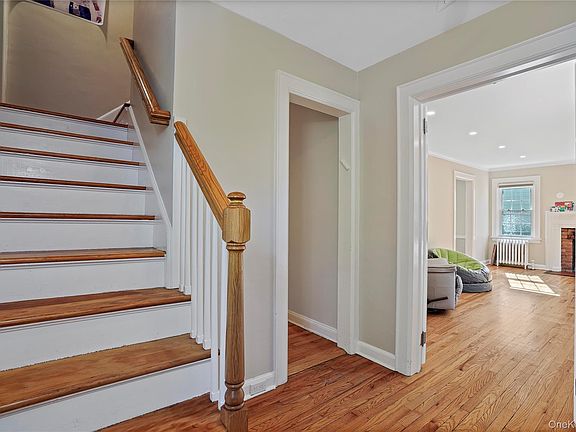 Upstairs, discover three bedrooms with spacious closets and sunny spaces. The renovated hall bathroom has a tub and there is a great linen closet for storage. The king-size primary bedroom boasts two sizable closets and an ensuite bathroom with a classic pedestal sink and tub. Stairs lead to a finished attic with additional storage, perfect for an office or extra living space. Hardwood floors & double pane windows throughout + plenty of recessed LED lights. The basement has a semi-finished rec room & a separate work room. Private backyard. Attached one car garage. Craven Lane is a quiet cul de sac which borders Ralph Field, a beautiful park & playing field. Easy walk to the Highlands Middle School.