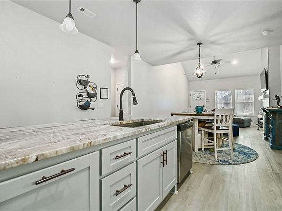 Bonus roomEat-at islandWalk-in closetBathroom with double sinksWindow blindsVaulted ceilingsModern kitchen