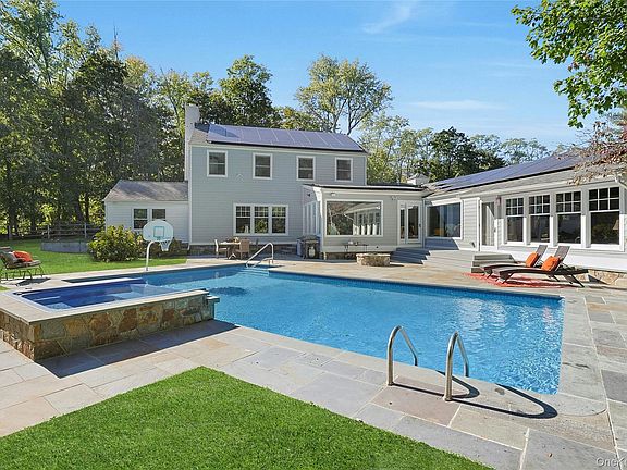 Refined living in the heart of Armonk. Set along a private tree-lined drive in Yale Farm, one of Armonk’s most desirable neighborhoods. This distinguished 4-bedroom 3.1-bathroom colonial blends timeless architecture with modern luxury. Elegant design and comfortable sophistication define every space. The main level features a flowing open layout ideal for both entertaining and relaxed everyday living. The updated chef’s kitchen with a large center island opens to a striking family room with dramatic wood-beamed cathedral ceiling and stone fireplace. A glass door extends the living space to an expansive deck overlooking a beautiful landscaped backyard with an inground pool, spa and firepit – your own private resort for summer gatherings. A formal dining room leads to the living room with a fireplace and sun-filled heated four-season room. An office, powder room and gym with a full bath complete the first floor. Upstairs is the primary suite with two walk-in closets and a spa caliber bathroom featuring a multi-jet shower, soaking tub and vanities. A private deck provides the perfect spot for morning coffee or evening unwinding. Three additional bedrooms and a stylish hall bath complete the second level. Located minutes from Armonk’s vibrant village center, train, airport, major highways and award-winning schools.