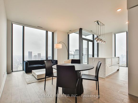 One year old Yorkville Lower Penthouse corner suite with upgraded designer finishes. This spacious 1068 sq. ft. 2-bedroom + den unit features beautiful flooring, modern bathrooms with integrated lighting, and floor-to-ceiling windows offering stunning south east views. Fully furnished including linens, kitchen accessories. Includes 1 parking spot. Enjoy amenities such as a party room, gym, yoga lounge , BBQ area, terrace and enjoy monthly in unit cleaning services. Prime location, steps to TTC, Yorkville Village, Eataly, shopping, dining, and nightlife. Available immediately. STRICTLY NO PETS due to being furnished