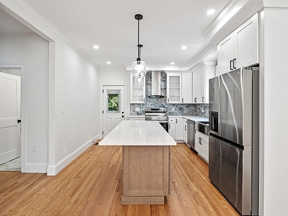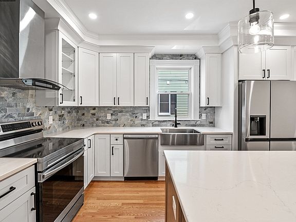 Completely Renovated 2 bedroom 1.5 bath unit. No expense spared on this renovation! This beautiful first floor unit is conveniently located with easy access to highways and train. Sun-splashed open concept Living-Dining eat-in- kitchen. Kitchen features shaker cabinets, stylish tiled backsplash, bar Island, Quartz counters, new stainless-steel range hood and appliances. Gleaming hardwood floors and high ceilings throughout. Large bedrooms and a full bath featuring double bowl vanity and designer tile. Laundry in unit. New plumbing & electrical throughout. New high efficiency heat pump heating and cooling. Pet friendly association with large partially fenced yard. 1 car deeded garage plus freshly paved 1 car driveway parking. Huge basement with exclusive-use storage area.