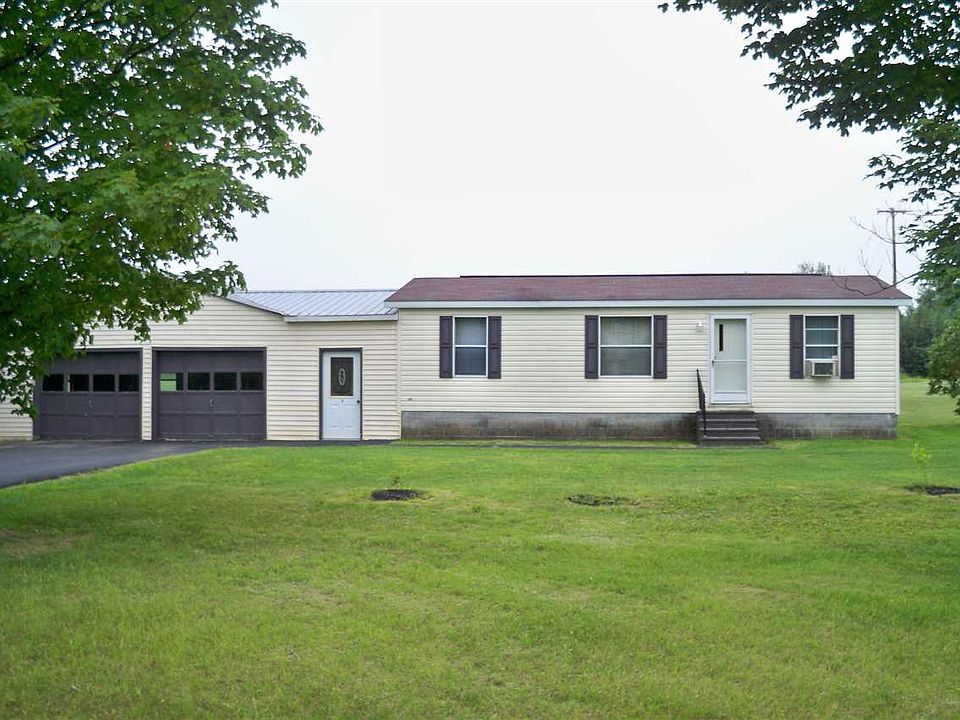 8 Dailey Ridge Road, Madrid is a comfortable double wide manufactured home with an attached 30'X30' two stall garage. You enter the home through a large breezeway. An additional room was built off this area that could be a great home office, den, or 4th bedroom. The kitchen with dining area is open to the large living room with cathedral ceilings and 3 bedrooms and a full bath & laundry area complete the one story floor plan. There is also an enclosed screen room at the rear of the home. The two car attached garage is not as long on one side because of the additional room that was added on. Electric is approx. $50. per month. The depth of the well and the size of the septic is unknown.