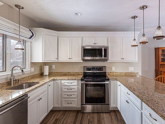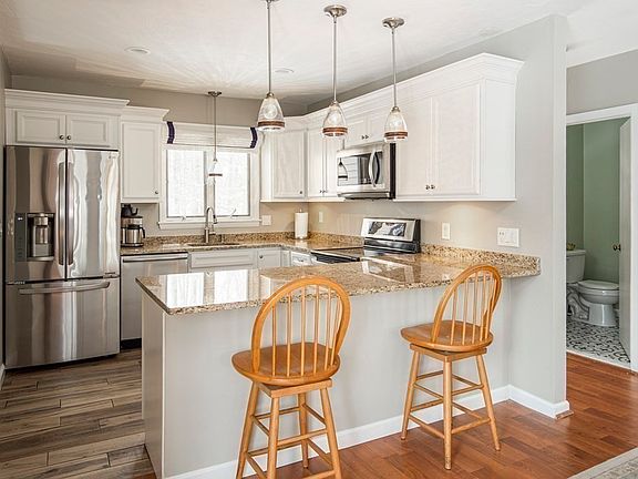 - Kit Dscrp: Countertops - Stone/Granite/Solid, Flooring - Stone/Ceramic Tile, Breakfast Bar / Nook, Recessed Lighting, Stainless Steel Appliances, Cabinets - Upgraded, Countertops - Upgraded, Open Floor Plan, Main Level, Peninsula, Lighting - Pendant
