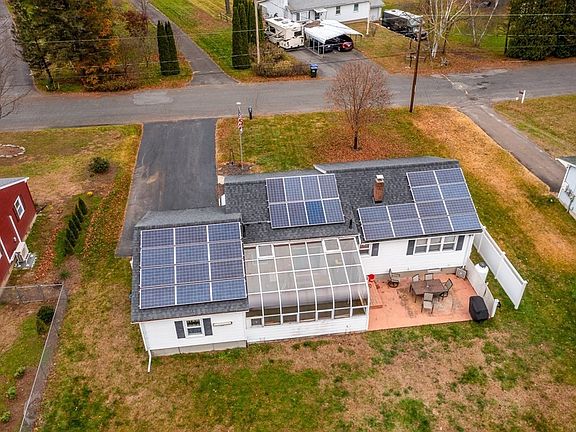 Well maintained Ranch on quiet side street with easy access to Rt 141 and close proximity to town. The updated kitchen leads to comfortable living room with propane stove, three bedrooms with hardwood floors and full bath. The bright and sunny attached greenhouse opens to patio and delightful yard with beautiful views of Mt. Tom. Attached 1 car garage, central air, storage shed with electricity and owned solar panels are additional features.