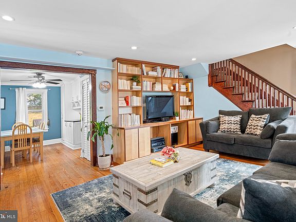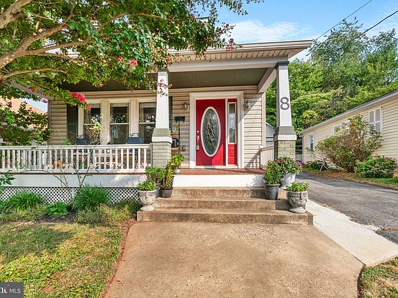 Charming Cape Cod-style home in tranquil Frederick, featuring 1,560 total square feet, 2 bedrooms, 1 full bath, and 1 half bath. Step into the main level to find a welcoming living room featuring a decorative fireplace, a built-in media center with shelving, a built-in desk, and built-in cabinets. The hardwood floors extend into the dining room, which includes bench seating and a dry bar. The stunning kitchen, remodeled in 2021, boasts white shaker cabinets, stainless steel appliances, quartz countertops, a white subway tile backsplash, and access to the back deck. On the upper level, you'll find a full bathroom with stunning floor-to-ceiling tile work and mosaic details, along with two spacious bedrooms featuring cathedral ceilings. The primary bedroom boasts hardwood floors and a built-in bed and dresser system, while the second bedroom includes custom built-ins. The lower level features an unfinished space ideal for storage or your personal customization, complete with a half bathroom. Savor your morning coffee on the spacious front porch, which overlooks a meticulously landscaped yard with a floral-lined stairway and pathway. Alternatively, relax in the expansive fenced backyard, featuring a 1-car garage, deck, and storage shed. This home is conveniently located near amenities such as the Frederick County Public Library, local shops and restaurants, Baker Park, and major commuter routes like Route 15 and I-70.