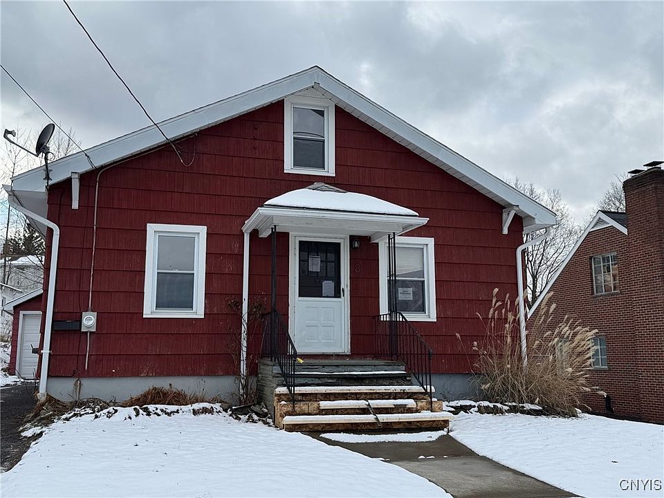 Pleasant two bedroom bungalow on a quiet neighborhood street. Comfortable sized living room, dining room, and two bedrooms on the first floor all featuring hardwood floors. The kitchen opens to a large enclosed porch overlooking the patio and partially fenced back yard. The second floor is a finished area that could be used as a bedroom or any number of other purposes. There is need for a refurbishing to make this home sparkle, but there is a lot of potential. There is also a full basement and a one car garage.