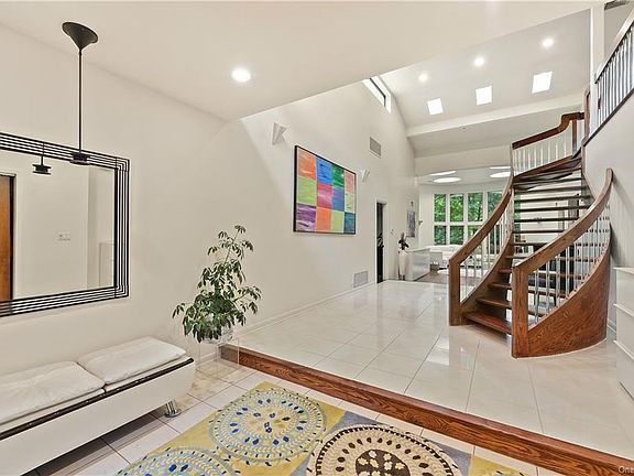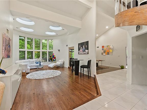 Location! Situated on a private enclave yet only steps away from the park and 3 minutes train/shopping this sophisticated contemporary has it all. It exudes space and natural light with its soaring ceilings, magnificent windows, clean palate and generous floor plan. This immaculate center hall contemporary has a dramatic grand entry, walls of windows and a large wraparound deck which acts as an outdoor panorama showcasing impressive views of a private sanctuary. With a 2,400 sq ft walk-out basement, this is a perfect home for entertaining friends and family. The open floor plan, fantastic flow and curved walls are designed to take advantage of the truly breathtaking landscape. The home's many over sized skylights illuminate the interior and create a natural ambiance. Situated on a cul-de-sac, this home is complimented by a Belgian block circular driveway, inviting front lawn and stone walkway. This home combines privacy and convenience within the top-rated Blind Brook school system.