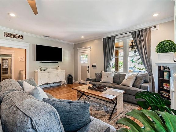 Wow! What a beauty! This wonderful sprawling one story home in beautiful Midtown Mobile is beautiful inside and out. Demouy has a great reputation of being one of the best streets in Midtown! Just a few of the fabulous interior features are: hardwood and tile flooring throughout, arched entrances, 5 panel doors (several natural wood)with glass doorknobs, split bedroom floor plan, plentiful storage all over, tankless hot water heater, wavy glass in the antique windowpanes, an abundance of natural light, gas burning fireplace, and so much more! As you go towards the primary bedroom, you walk through a charming bonus room which could be an office, nursery, library, or whatever your heart desires. In the spacious primary there is a huge walk in closet and an absolutely beautiful updated bathroom that has a water closet, tiled shower, double vanities and ample cabinetry & drawers. The other 2 bedrooms share an updated Jack & Jill bath. One of these bedrooms has 2 closets. The kitchen boasts stainless appliances, a pantry with more storage underneath, breakfast bar, breakfast area, & lots of cabinetry & countertop space. In the rear is a large den which leads out to a covered deck! Entertaining will be a dream in this home! This backyard showcases a lovely working fountain, lots of green space, a storage shed, privacy fence, AND! A darling clean 400sf garden cottage that has been rented as an Airbnb! (This square footage is not part of the homes square footage) Complete with a bathroom and a large space for living, sleeping, & dining. The front walk is partially bricked and this home showcases one of the best front porches I ve ever seen in Midtown!!! Beautiful landscaping also graces this wonderful property! This is a double lot and has 2 parcel ID s. If you are facing the home, the driveway is to your right. The walkway to the back cottage is to the left but can also be accessed from the back yard.