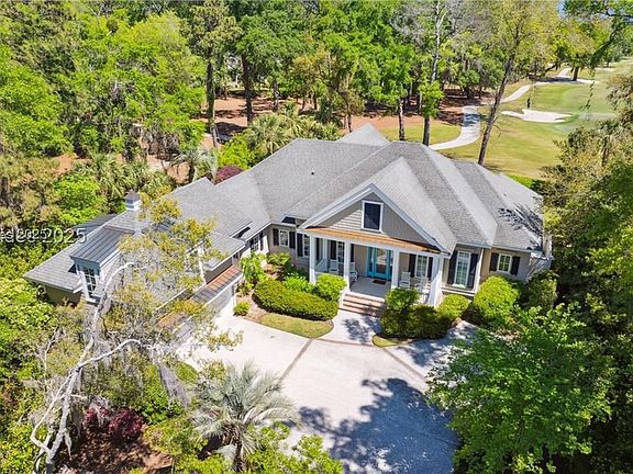 Unbelievable opportunity to own a stunning custom Lowcountry-style home overlooking the 1st green and fairway of the prestigious Nicklaus course. Featuring an open layout with soaring ceilings, elegant crown molding, and heart pine floors, this home also includes a private study ideal for remote work. The newly remodeled chef’s kitchen opens to a spacious great room, leading to a screened porch with retractable screens and a custom pool/spa—all with panoramic golf views. Two guest suites with full baths on the main level and a large upstairs bonus room with an additional bath make this home perfect for entertaining and everyday living.