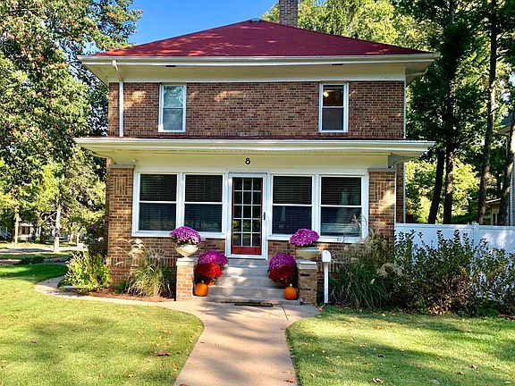 DUNCAN PARK UNIQUE FRANK LLOYD WRIGHT *HAS A BRAND NEW TRANSFERABLE TO NEW OWNER ROOF*** 8 DUNCAN PLACE OWNS CURB APPEAL WITH A STATEMENT FRONT PORCH QUARTER CIRCLE PORTICO ENTRY" - THE DIFFERENCE IS IN THE DETAILS! HOME IS FULL OF CHARACTER & CHARM - IT WILL STEAL YOUR HEART - LOVE THE STUNNING HW FLOORS-CROWN MOLDINGS-RETRO COOL STAIRCASE & CUSTOM BUILT INS - WARMTH OF THE SOLID HARDWOOD FLOORS WARM IT UP - AT ENTRY SITE LINES GO TO THE RETRO IRON RAILINGS ON THE STAIRCASE - THAT TRANSITIONAL LOOK IS "IN STYLE" - A LARGE LIVING ROOM W/ GREAT WINDOWS IS PERFECT - CUTE KITCHEN- 13X13 FORMAL DINING ROOM-PUT A WREATH ON THAT GORGEOUS FRONT DOOR - YOUR HOSTING HOLIDAYS - THANKSGIVING OR CHRISTMAS BRING THE FAMILY - AFTER DINNER ADJORN TO THE BONUS ROOM - A 19 X 9 ALL SEASON/SUN ROOM - HEATED FLOORS A WALL OF WINDOWS THAT VIEWS THE PARK - THOSE VIEWS ARE PRICELESS - A GLASS DOOR IN THIS ROOM OPENS TO THE PARK - FEATURING ATTRACTIVE STEPS DOWN AND A SIDEWALK LEADING TO THE PARK - TAKE A WALK- WATCH A PARADE GO BY - THE DUNCAN PARK LOCATION WILL "SEAL THIS DEAL" BACK INSIDE FINDS A CUTE POWDER ROOM. UP THAT COOL STAIRCASE -FIND 3 LG BEDROOMS - THE HARD CUSTOM-BUILT INS CONTINUE + A TRENDING 10X10 DRESSING ROOM - SO "VOGUE" + A FULL SHARED BATH - UNEXPECTED THE BASEMENT LEVEL- IS BRIGHT FUN & SPACIOUS W/NICE FULL BATH - SO 2.5 BATHS - EISENHOWER SCHOOL- 2 CAR ATTACHED GARAGE. LOVE THE CURB APPEAL -LOVE DUNCAN PARK -ADORABLE HOUSE - LOCATION LOCATION LOCATION!