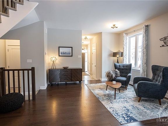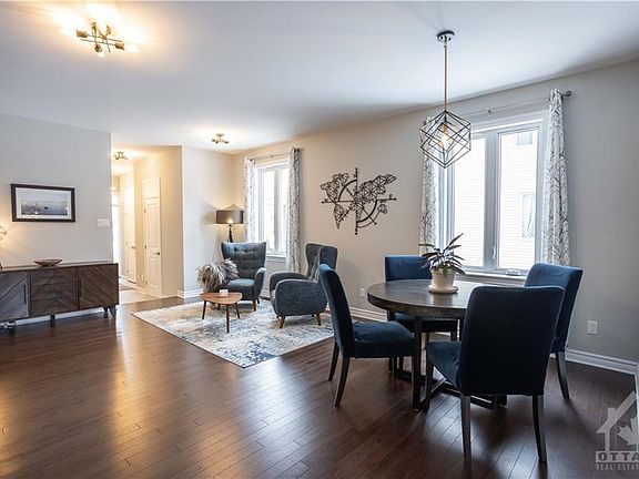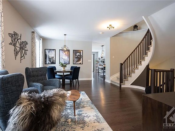 Immaculate 2020 build family home offers over 2600 sq ft of living space & is located in the quiet village of Russell. The foyer welcomes you to a cozy living rm & formal dining rm featuring 9' ceilings, hardwood floors & tons of natural light. The gorgeous designer kitchen features stylish finishes with granite countertops, oversized island, high end appliances & pantry. The open concept design overlooks the stunning great rm w/ fireplace & wall of windows! The curved staircase leads you to the 2nd level featuring 3 generously sized bdrm, laundry rm and a breath taking loft, perfect for flex space or a home office! The primary bdrm includes a walk-in closet , 4pce en-suite with ceramic tile stand up shower & tub! The lrg basement is perfect for a rec room, home gym & play room! Backyard interlock patio 13x18. Nearby 15+ acres of greenspace, pond w/ track, bike trail, conservation area, reputable schools, dog park & sports dome. No conveyance of offers prior to Tues. March 8th, @ 2 PM.