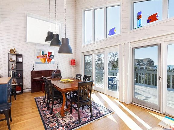 Coastal tranquility positioned directly across from the pristine white sands of private Kelly Beach in Bonnet Shores. Natural light & stunning ocean views dominate this home's living & dining spaces, which are accented by towering ceilings, walls of glass & beautiful hardwood floors.Feels like you are beachfront being just steps to the boardwalk.The residence is arranged over 3 floors of stylish interiors with many attractive renovations,built-ins,plantation shutters & plenty of closets throughout.A spacious eat-in kitchen with a nearby wet bar enjoys views of the ocean & Wesquage Pond & is adjacent to a large dining area with sliding glass doors merging indoor & outdoor living spaces. A southwest facing wraparound,oceanside deck encourages sunset dinners & complete relaxation.The master bedroom encompasses an en suite bath with steam shower & ocean views right from your bed. Ample accommodations for guests including a finished lower level right off the beach with its own entrance. The property also has the convenience of 2 driveways & a two-car garage offering plenty of parking for up to 14 cars. Outside an enchanting landscaped fenced yard with a shed & outdoor shower is surrounded by tall evergreens for privacy & stone pathways achieving a feeling of Zen.Moments from South County's finest restaurants & events throughout the year make this an ideal family home or vacation retreat.