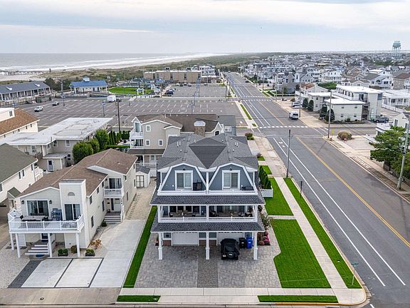 A VERY RARE FIND. Beautiful, almost new (built in 2023) corner BEACH BLOCK, three-story, upside-down style townhome with five bedrooms, four and a half baths with wonderful ocean views. Enjoy the short walk to beach as well as the convenient access to town. Lifeguards are located at 26th and 28th Street and 30th Street is a surfing beach. First floor has a bedroom, hall bath and wonderful family room with two beverage fridges overlooking the in-ground pool with ample paver decking for lounging. Second floor great room offers a living area with gas fed fireplace, spacious dining area and beautiful kitchen with white cabinets, stone tops, premium stainless-steel appliances and powder room flowing out to the main covered deck. There is a wonderful bedroom with en-suite bath on the second floor. Third floor has a fabulous primary bedroom with en-suite bath and large sun deck offering astounding ocean views. There are two more bedrooms, hall bath and laundry located on the third floor. The beach block in Avalon is primarily single family zoned so this unique townhome is near impossible to replicate. The pool area has perimeter arborvitae for privacy and the landscaping around the home is stunning. The home is sold attractively furnished.