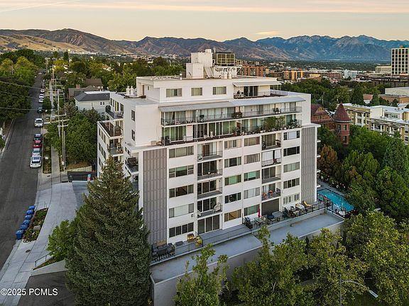 Experience one of the most enviable views in downtown Salt Lake City from this one-bedroom condo at The Panorama, a building that perfectly balances vintage Hollywood charm with modern convenience. Rarely available, this main-level residence opens onto a spacious, private terrace where the city skyline becomes the backdrop for your morning coffee or evening cocktails with friends. Large windows fill the space with natural light, creating an airy, inviting atmosphere. While this condo is ready for a personal touch, updating walls, paint, flooring, kitchen, and bath, it offers the perfect blank canvas to create your dream urban retreat. Residents enjoy a refreshing outdoor pool for summer days, an elevator for effortless access, and secure underground parking with an additional storage unit, ideal for bikes, skis, and outdoor gear. The location is unmatched: just blocks from City Creek Center, Temple Square, Abravanel Hall, the Delta Center, the theatre district, restaurants, coffee shops, and vibrant nightlife. Pet-friendly and full of potential, this is a rare opportunity to create something truly special in the heart of the city. ** Virtual Staging photos included to show potential changes that could be made by Buyer.