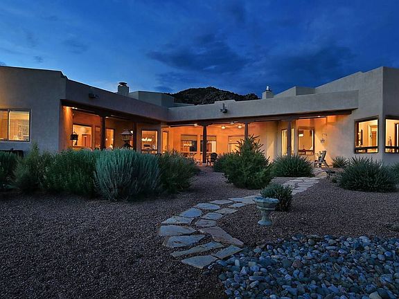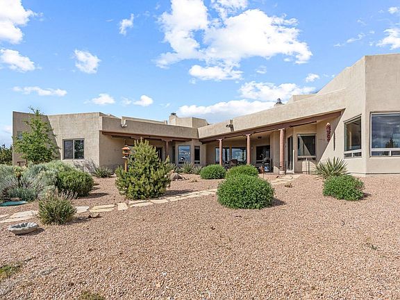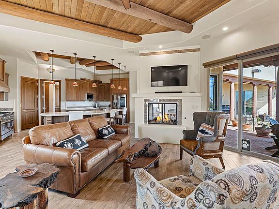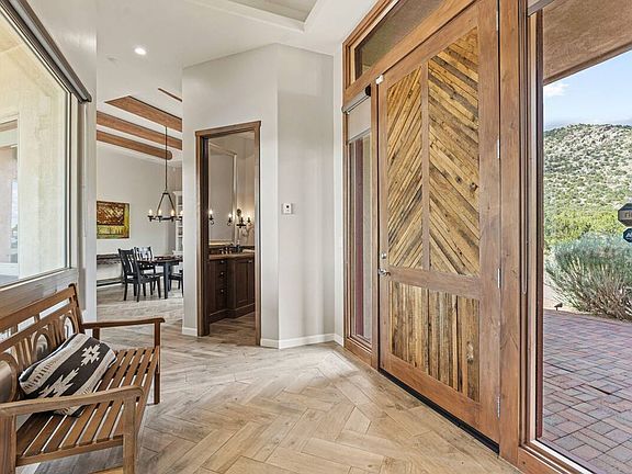 The rear porch area, overlooking the Galisteo Basin, invites you to enjoy the breathtaking outdoor expanse.