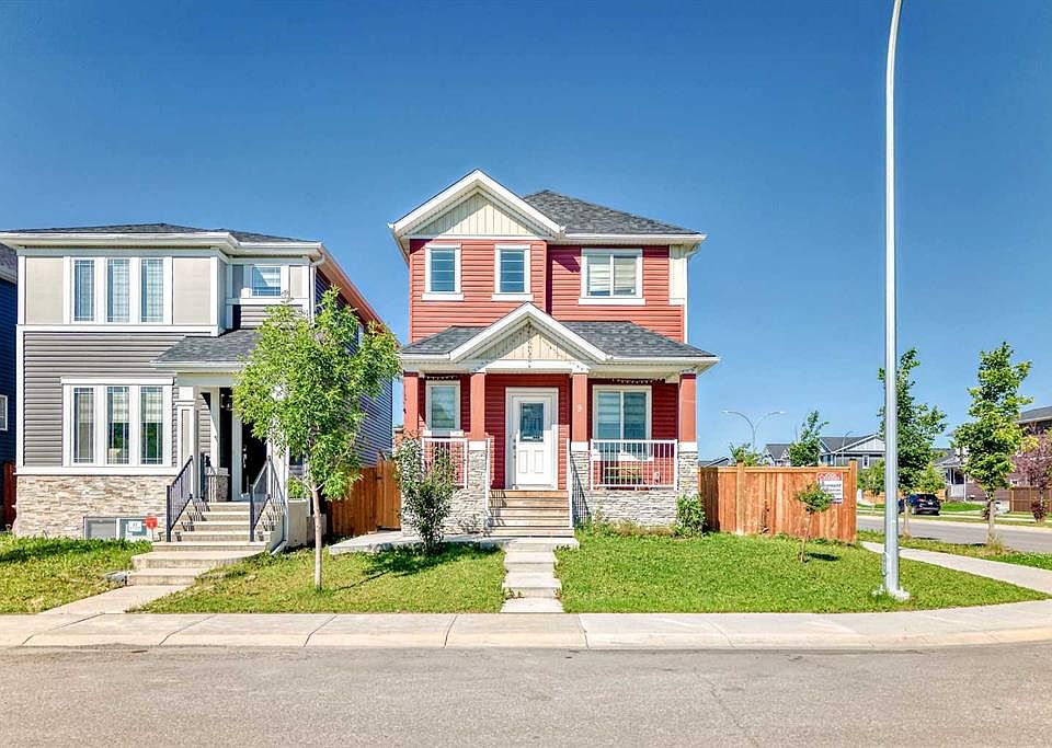 Bright 2-storey family home in a great Calgary community! Features 4 spacious bedrooms, bonus room, open kitchen/family room, and a fenced - maintenance free- concrete backyard. Main floor has separate Living room for friends and guests and a cozy Family room with a gas fireplace. 2 Piece Washroom right in front of the living room. Upgraded Kitchen cabinets and quartz counter top with gas stove - a must see. Beautiful LVP and carpet flooring. Upstairs welcomes you with a luxury primary bedroom which has a walk-in closet and a 4 pc. ensuite. 3 more good sized bedrooms and even a bonus room. Laundry is on this floor for added convenience. Basement is fully finished Illegal suite with separate entrance from the outside. A massive kitchen and living area in the basement with 2 very good sized bedrooms. A separate laundry is also available in the basement. At the back you are treated with an oversized heated garage which is accessible from a paved alley. A lot of parking available on the street as it's a corner lot. Close to parks and all amenities an easy access to the Stoney trail — move-in ready and waiting for your family!" ** Hail related damages will be repaired before possession.**