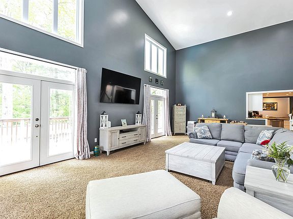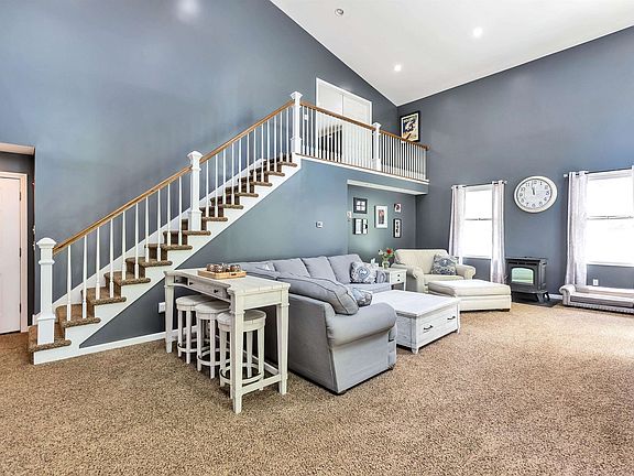 This home in a convenient Derry location is beautifully updated with a huge living room and primary suite addition. You walk in and you'll instantly notice the soaring ceilings of the living room with large windows and two sets of glass doors showcasing a deck nearly the length of the entire house. A staircase overlooking the living room brings you to the huge primary. The walk-in closet and large shower with tile to the ceiling are sure to impress. The original part of the home is where you'll find the kitchen, a separate dining room and three additional bedrooms with full bath. There is a walk-out basement with a ¾ bath and laundry and a finished area, which these homeowners use as a gym. The yard is fully fenced and very private perfect for taking a swim in the above ground pool or playing games in the generously sized grass area. There are lots of improvements here...leachfield, appliances, deck, driveway, drainage system, pellet stove, vinyl fence, and addition all done within the last eight years. Delayed showing until 5/24 Friday, after 2pm. Open houses are 5/25 Saturday 12-2 Come check it out!