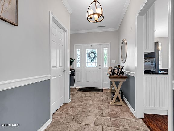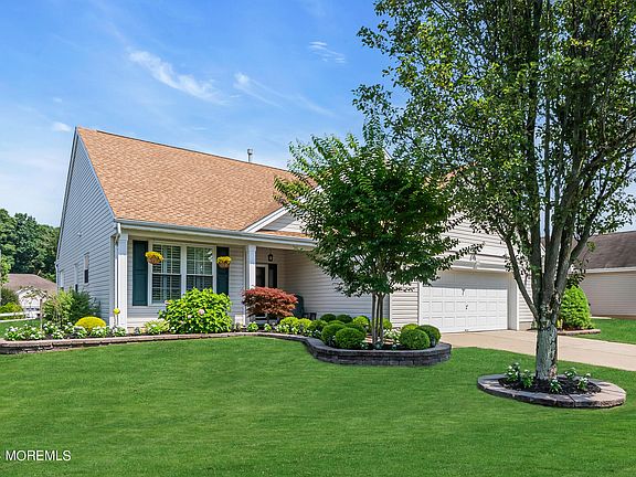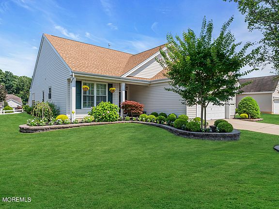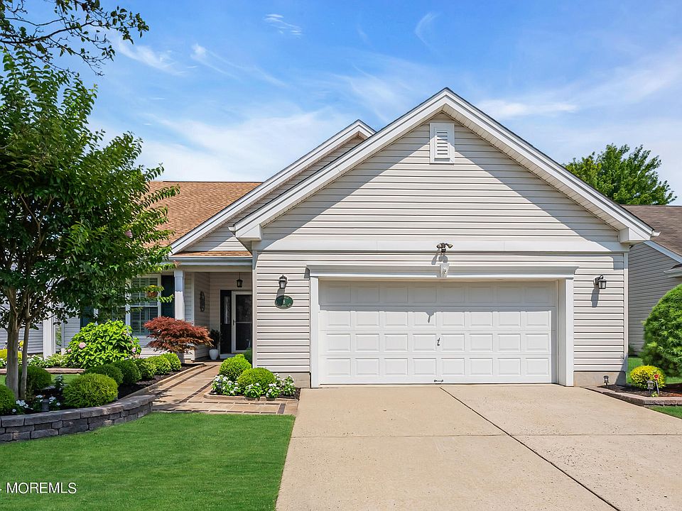 No expenses spared in this 2-bedroom, 2-bath home in the Villas at Jumping Brook Adult Community. Enter to newer floors & professionally painted throughout. The updated eat-in kitchen boasts granite counters, a backsplash, & S.S appliances. The large living room with a gas fireplace opens to the dining room, which flows into a sitting room used as an office. The primary bedroom includes a custom walk-in closet and an en suite bathroom with a renovated dual vanity, tub, and separate shower. The second bedroom is generously sized, with a renovated hall bath. Updates: new roof (2023), HVAC (2019), windows (2019), landscaping (2019), and paver walkway (2021). Enjoy the pool, clubhouse, walking paths, tennis courts, bocce, and more! See the features sheet for more updates. Conveniently located